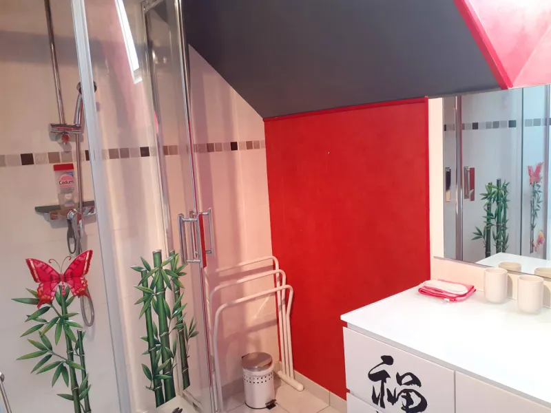 - Bedroom 1: 1 double bed 180 (80 €) separable into 2 single beds 90 (90 €), with shower and washbasin in the bedroom, wc on the landing.