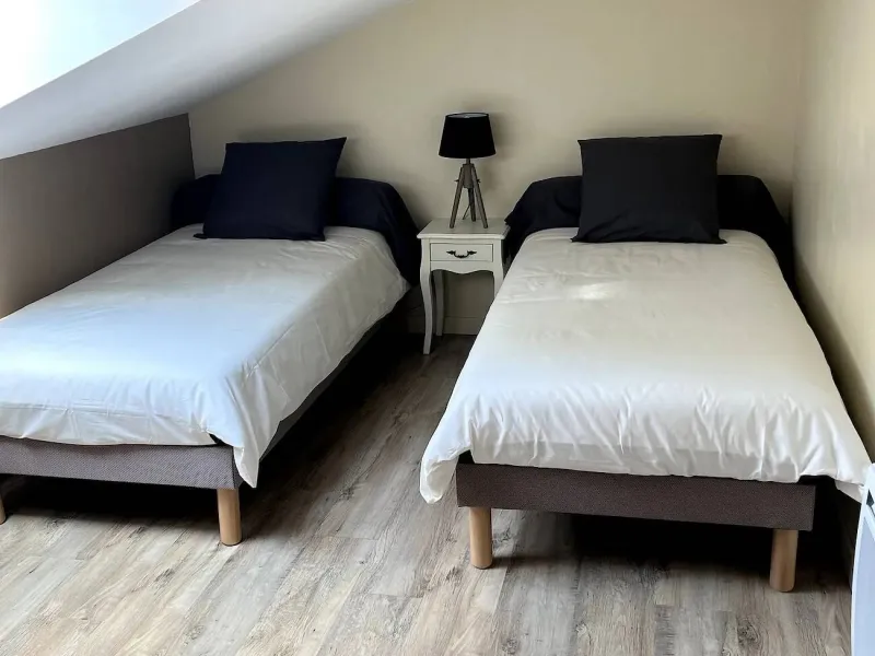 Upstairs, 1 bedroom with 2 beds 90x200 and another with 3 beds 90x200.