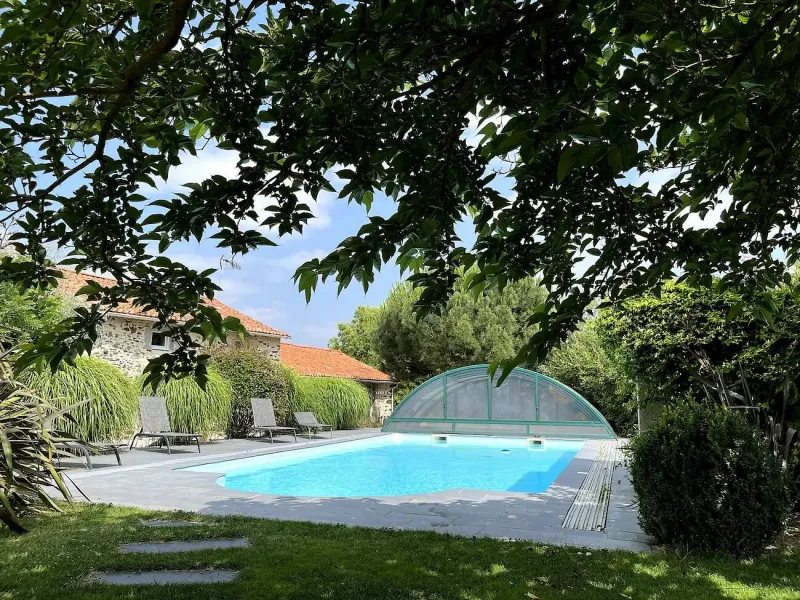 Outside, you'll enjoy a large private garden with terrace and garden furniture, barbecue, 9x5 swimming pool with dome and deckchairs