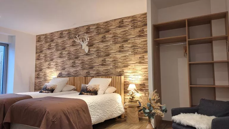 On her estate featuring unusual accommodation (bubbles and cabins), Sophie welcomes you to the ‘Nordique’ guest room. This 20 m² room has all the comforts you need. On this large estate, you will stay in an old building renovated with high-quality materials. Access to wellness facilities with spa available (additional service). Room with 160 cm bed, small lounge, private terrace, TV, WiFi and work area with desk.