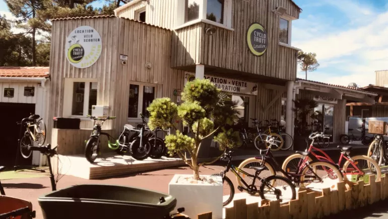 While spending holidays in La Palmyre, renting a Cyclo-Trott bicycle is ideal. Our store is located on the port, in the centre of a 40km network of bike tracks. With a few pedal strokes you can join the seaside, city centre, or have a ride in the forest. Cyclo-Troot is labelled Vélodysée and Accueil Velo, and has available to rent: hybrid bike, mountain bike, tandem, electric bike, tricycle, trailers for children, 50cc scooters, 125cc, motorbikes, and “Rosalie” quadricycle.