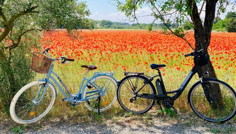 Partez à la découverte des célèbres vignobles de Châteauneuf-du-Pape ou des Dentelles de Montmirail. Admirez au fil d'une balade sur la Via Venaissia ou la Via Rhôna les magnifiques paysages que nous offre la Provence. Nous avons créé des itinéraires à télécharger gratuitement sur votre smartphone. Les vélos sont loués avec casque, sacoche sur le porte-bagage, support téléphone, cadenas et kit de réparation en cas d'avaries. Service de livraison/retrait, transfert de bagage, possibilité de récupérer/déposer les clients à la gare d’Orange.