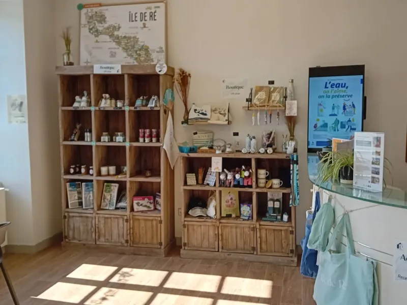 - Shop: postcards, local products (salt, jam, caramel...), souvenirs (Paris coin medal, totebag, posters, pens...), range of "Destination Ile de Ré" products (water bottle, mug, notebook, travel book for children...)