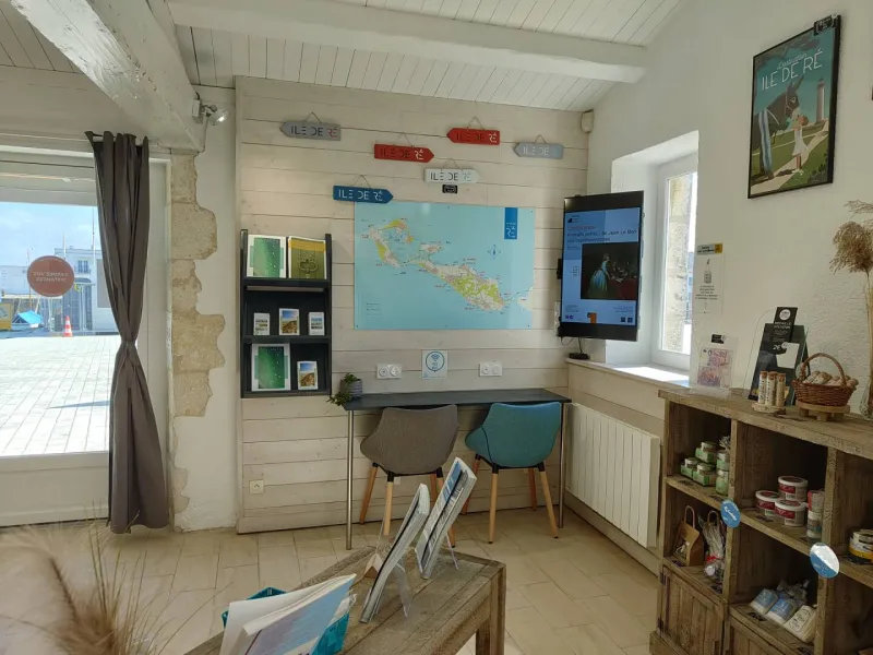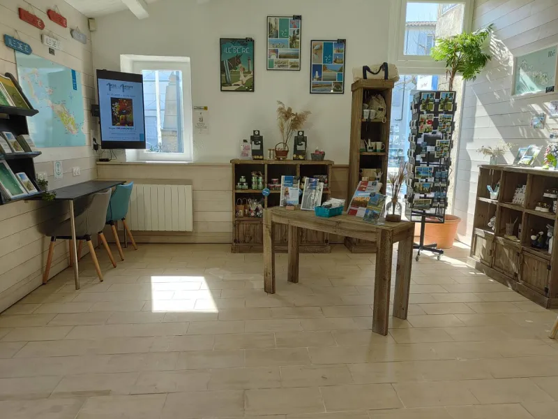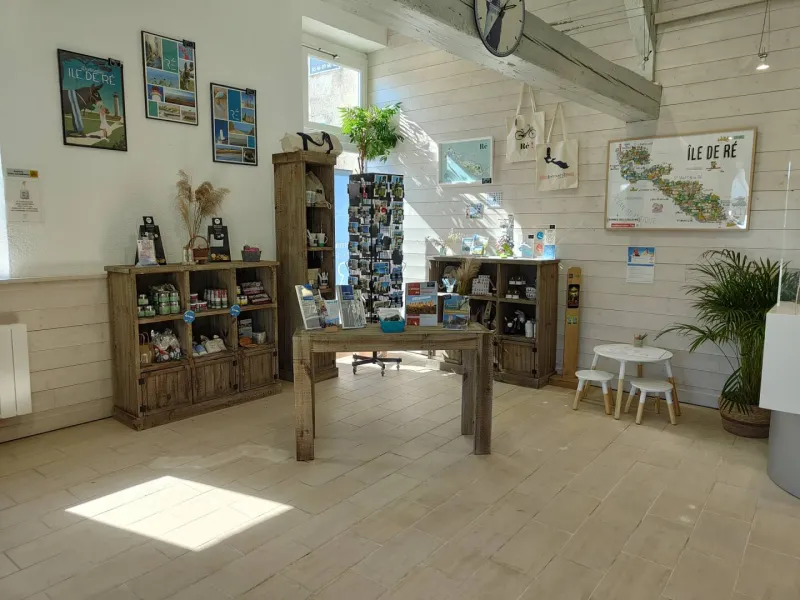 - Shop: postcards, local products (salt, jam, caramel...), souvenirs (Paris coin medal, totebag, posters, pens...), range of "Destination Ile de Ré" products (water bottle, mug, notebook, travel book for children...)