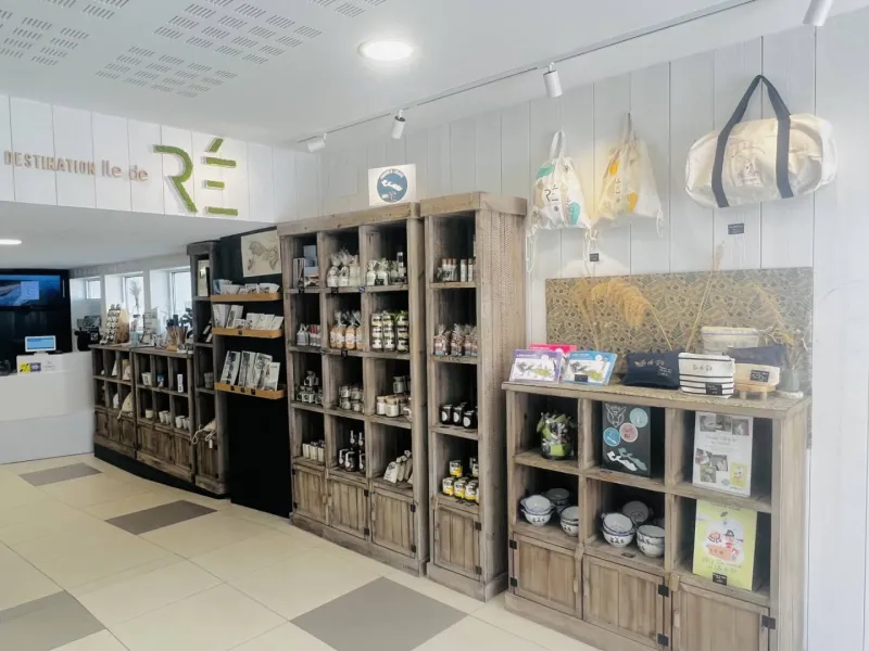 - Shop: postcards, local products (salt, jam, caramel...), souvenirs (Paris coin medal, totebag, posters, pens...), range of "Destination Ile de Ré" products (water bottle, mug, notebook, travel book for children...)